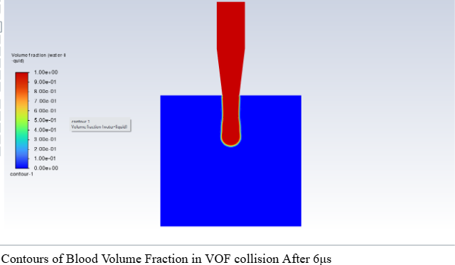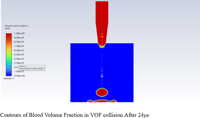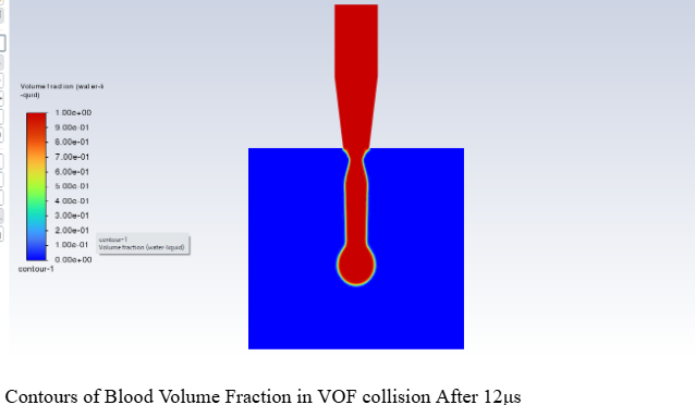 Re-Run and ComparisonI re-ran the transient VOF simulation using the non-Newtonian blood model with the same boundary conditions and wall impact setup. This allowed for a direct comparison between water and blood behavior during droplet formation and collision with the wall.